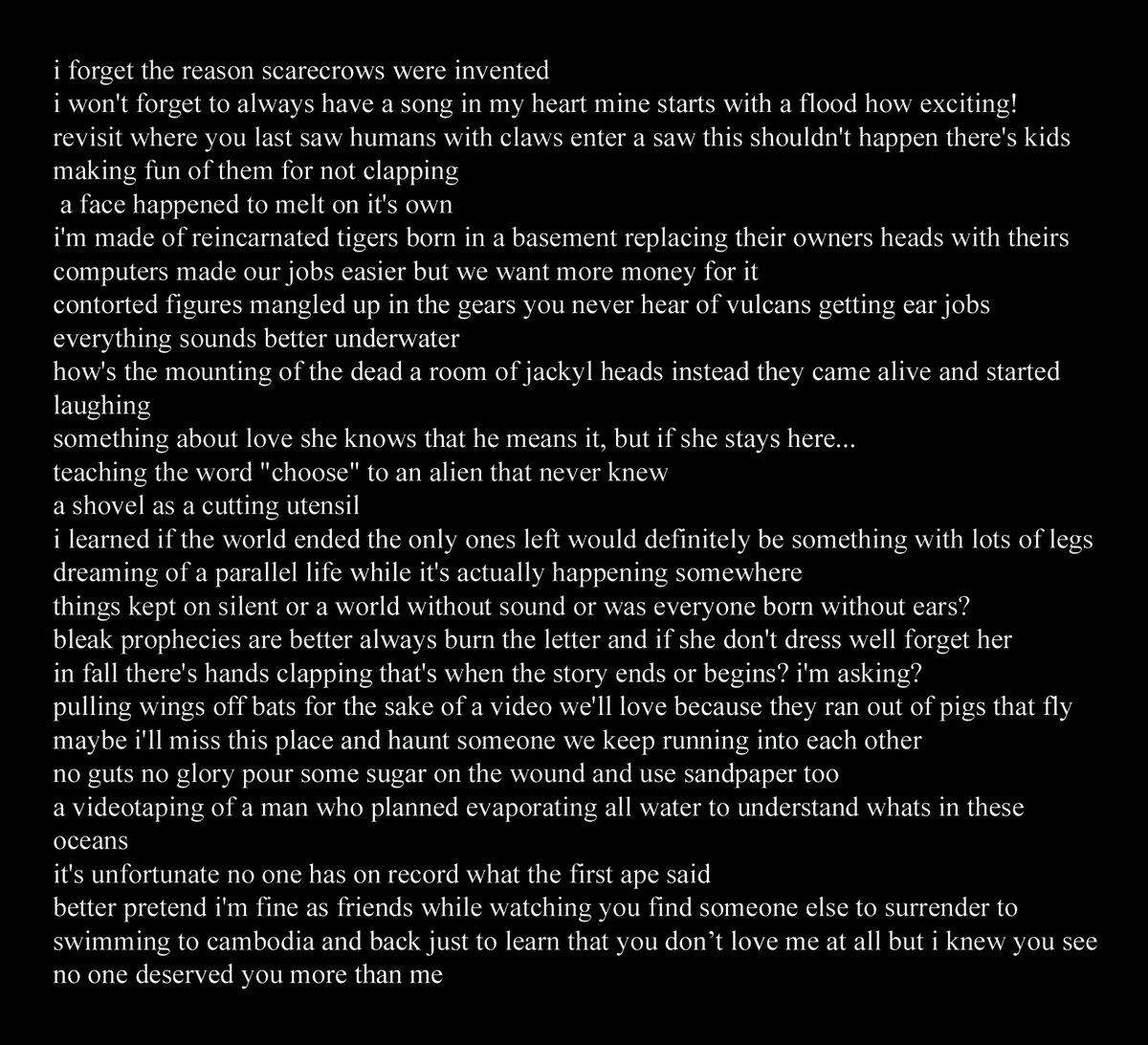 Recorded on analog cassette tape in Silverlake, Calfornia 90026 between March 2010 and April 2010.